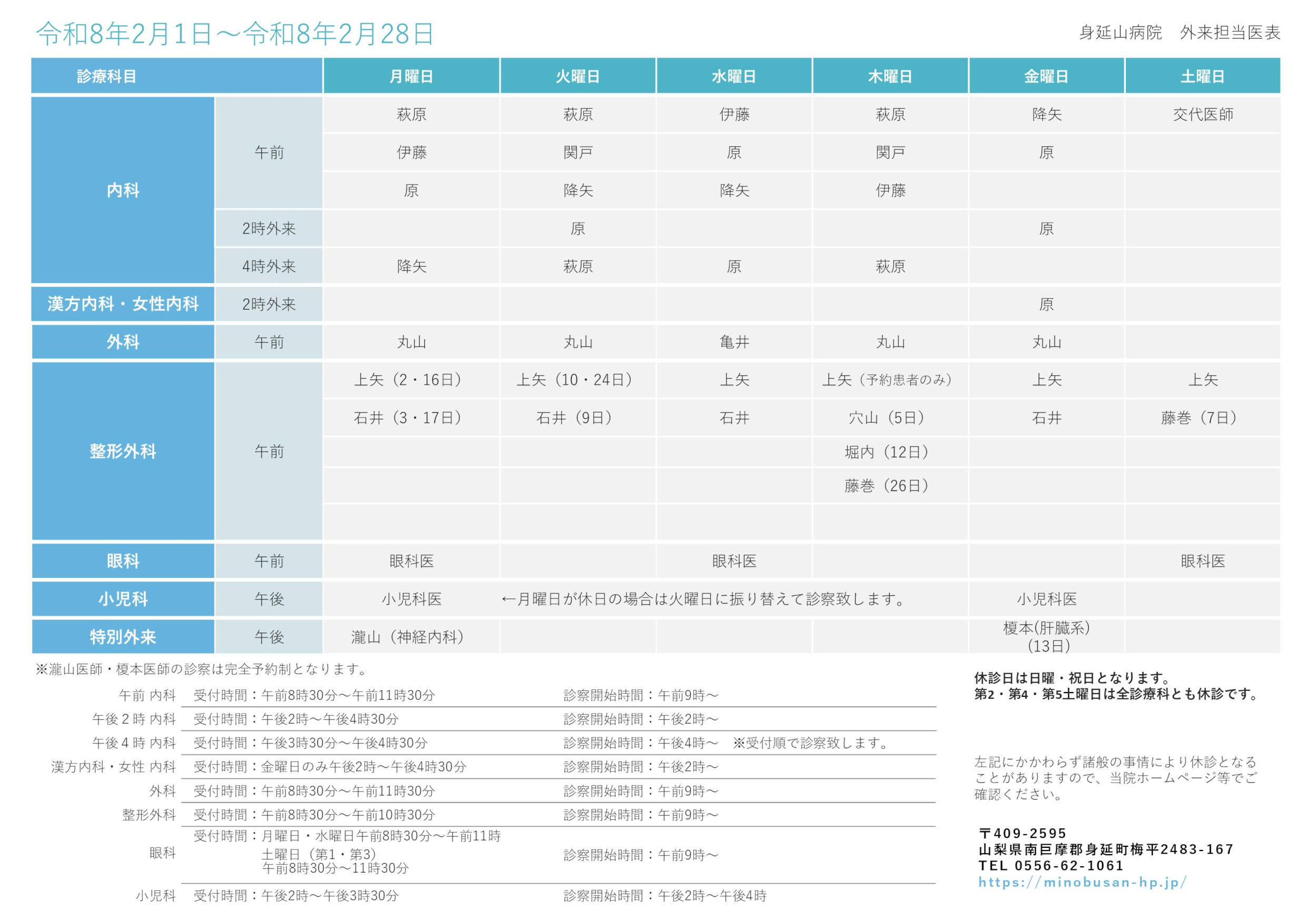 令和8年2月 外来担当医表