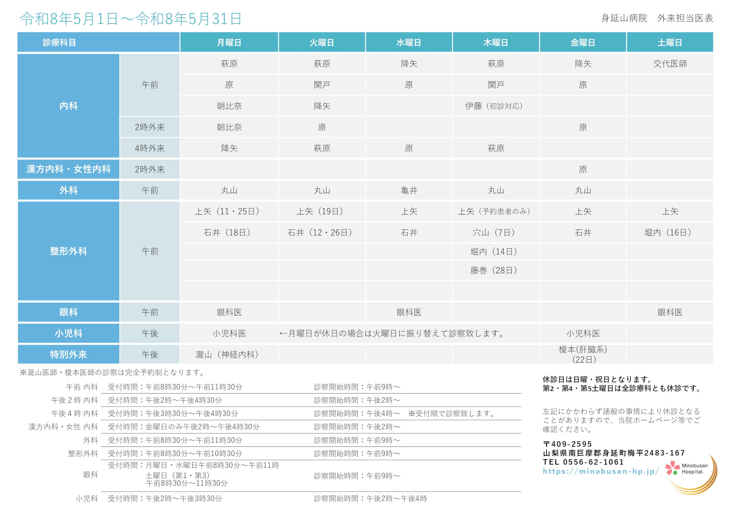 令和8年5月 外来担当医表